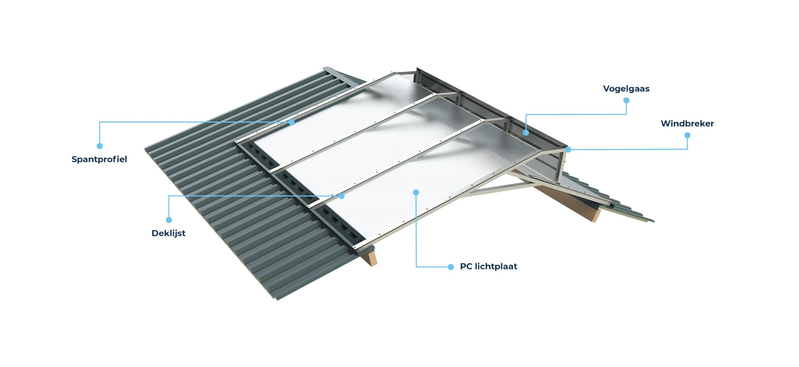 De oversteeknok levert Bunt Lichtstraten in diverse soorten en maten. Denk hierbij aan dubbelzijdig of enkelzijdig oversteek, met of zonder windgeleideplaat, etc. Met een sterke aluminium constructie en meerwandige polycarbonaat behoren onze platen tot de beste en leverbaar tot 5000 mm breedte. Doordat de ventilatieopening op het hoogste punt zit, is dit tevens de beste manier om warme en vervuilde lucht naar buiten te laten. Wij maken elke nok op maat en garanderen daarom ook een perfecte ventilatie. De oversteeknok is leverbaar in zowel heldere als opale lichtplaten. De opale lichtplaten zijn ook zonwerend. Neem contact met ons op voor de juiste bouwtechnische voorwaarden die leiden tot een probleemloze montage.